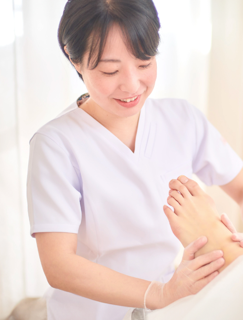 プロのセラピストになるための4つのカリキュラム(角質・魚の目ケア、爪ケア、レッグトリートメント、お客様対応)をすべて学べる本格コースです。